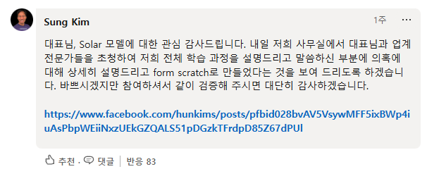 그러면서는 solar-vs-glm이라는 github repository의 링크만을 댓글에 딱 올려뒀다.